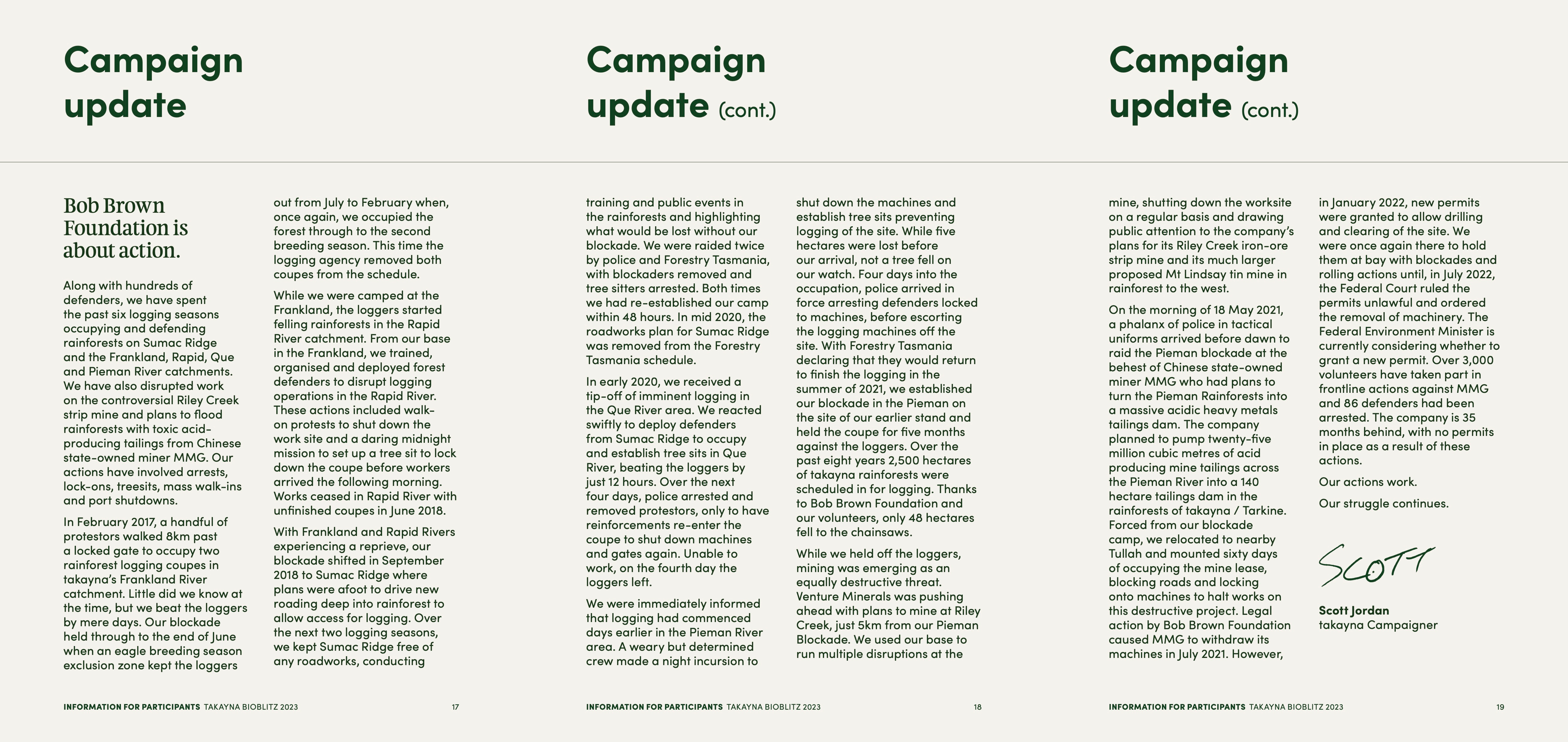 —The history of Tasmanian NVDA Aerial Activism is the next article in this series, submitted to Wild Magazine and due for their winter publication.
