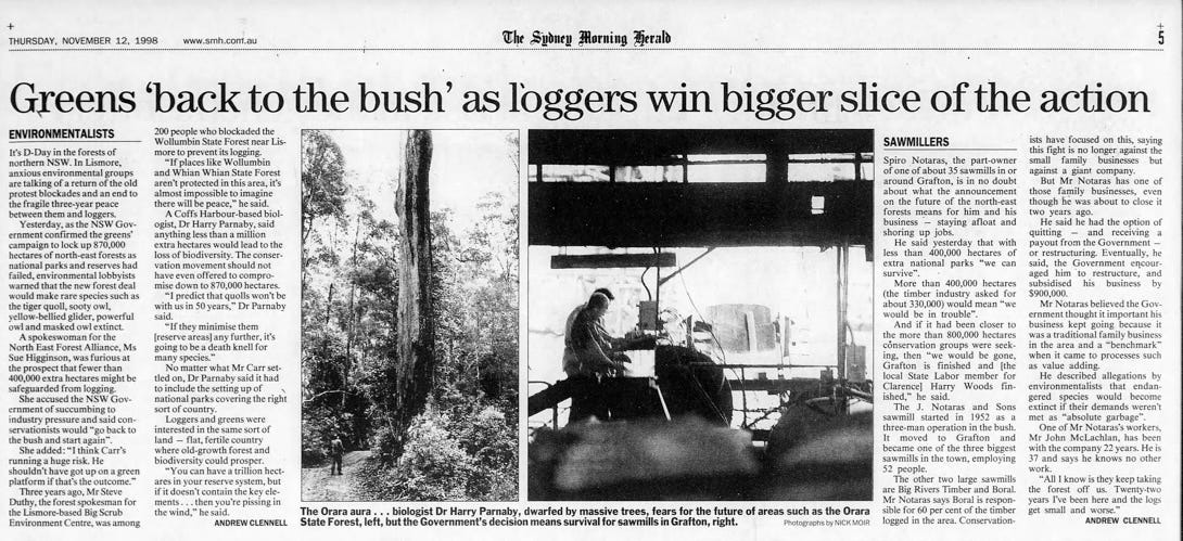 bits of early environmental activism history in the forests of Australia and New Zealand